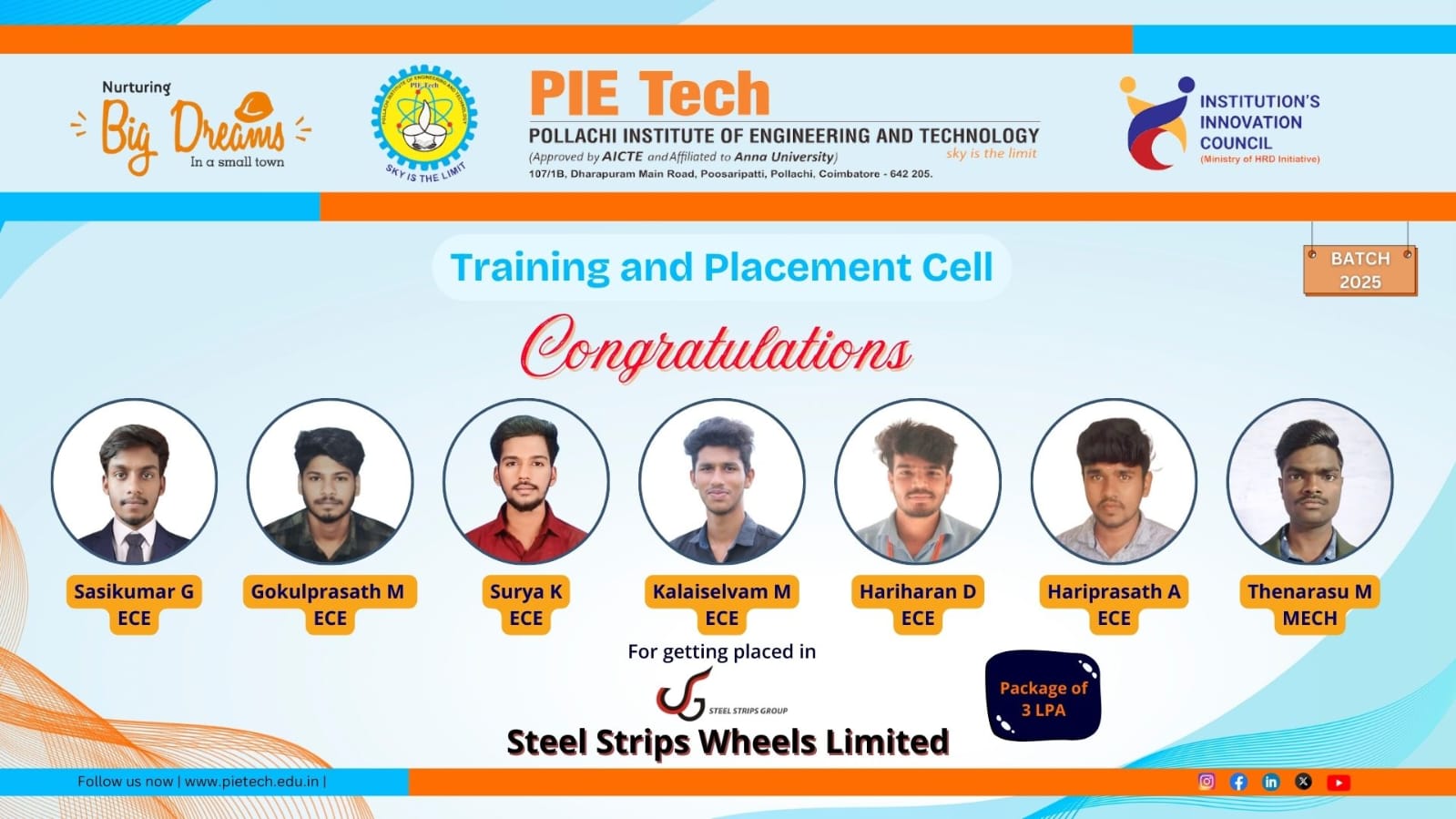 Pollachi Institute of Engineering and Technology (PIE Tech) is a premier educational institution managed by Hayagreeva Educational and Charitable Trust. The Trust manages one more institution namely Pollachi College of Arts and Science(PCAS). Read more